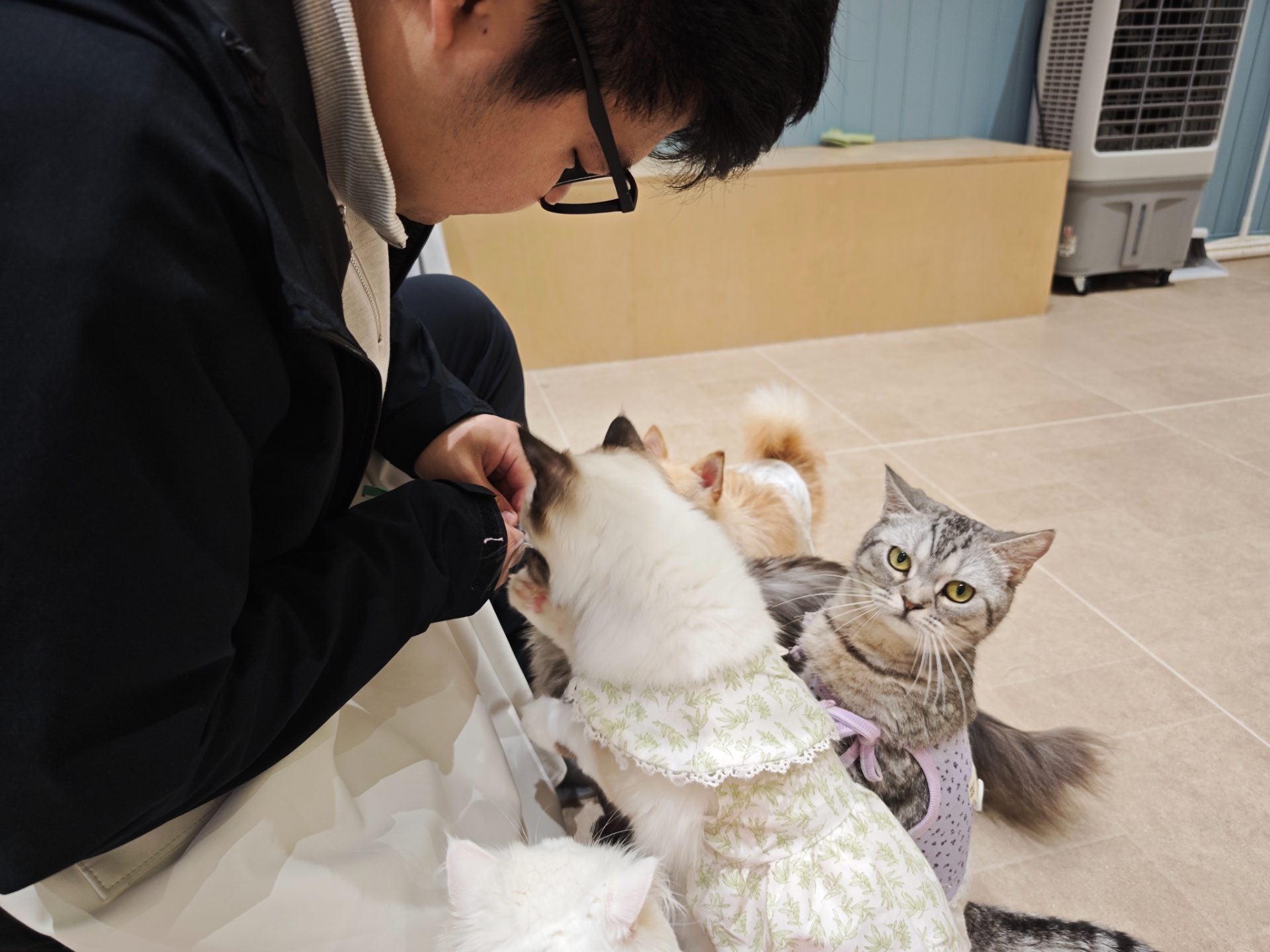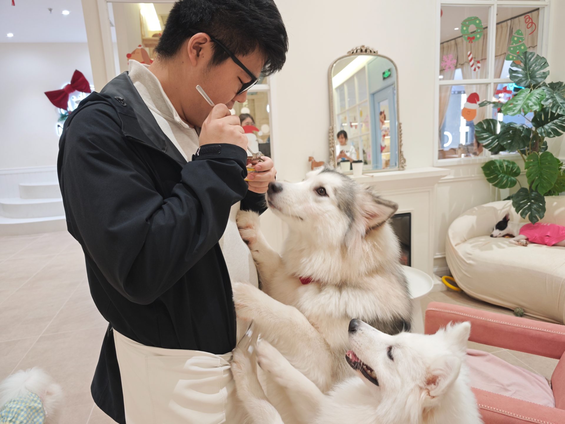 我们第一次撸猫撸狗记录 狗狗很热情猫猫很高冷 但当它们遇到小零食 高冷就全部消失了哈哈