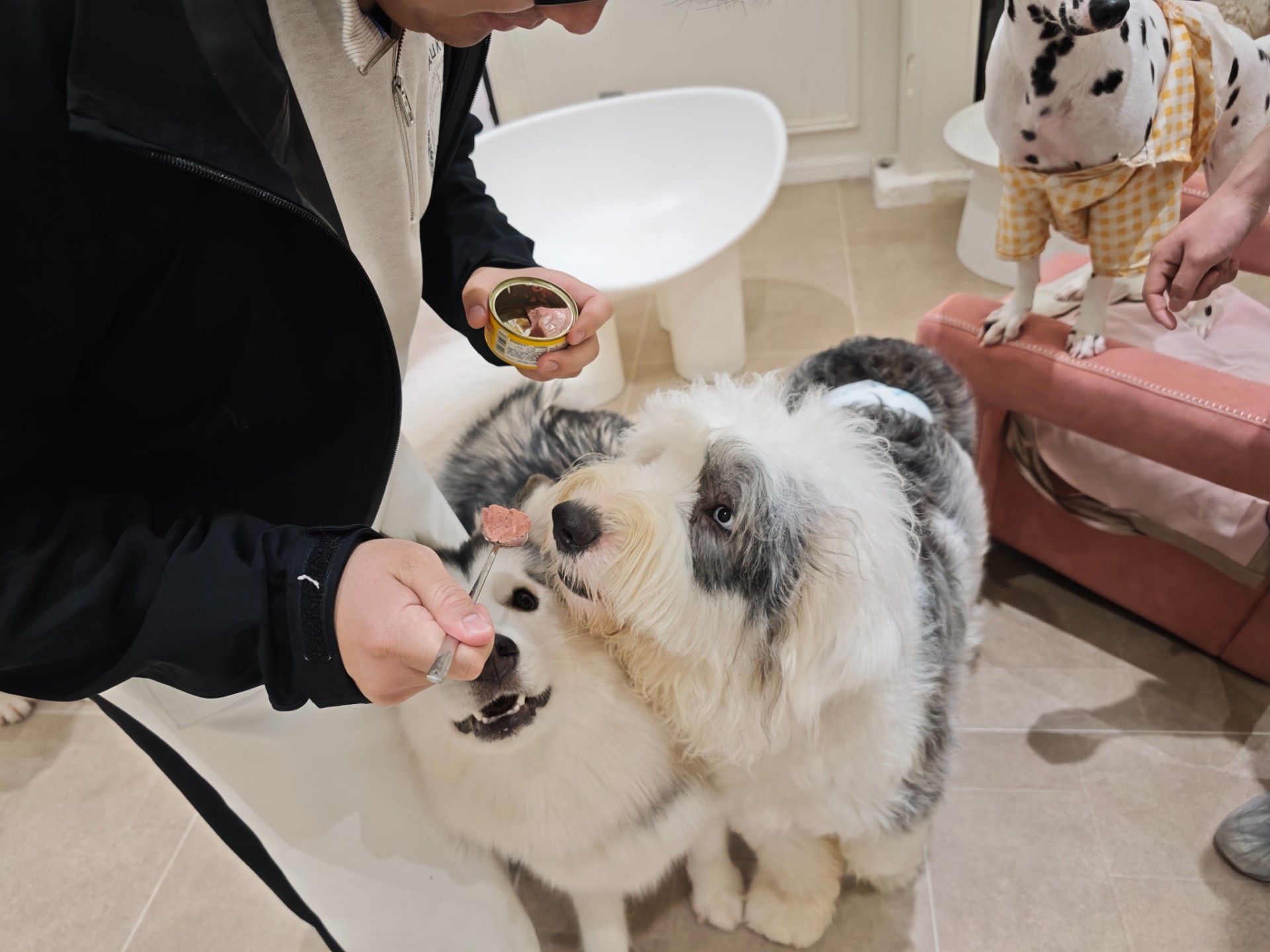 cc:该用什么办法才能引起它们的注意呢 cc:噢!是罐罐! 于是cc被🐶包围了哈哈哈哈哈