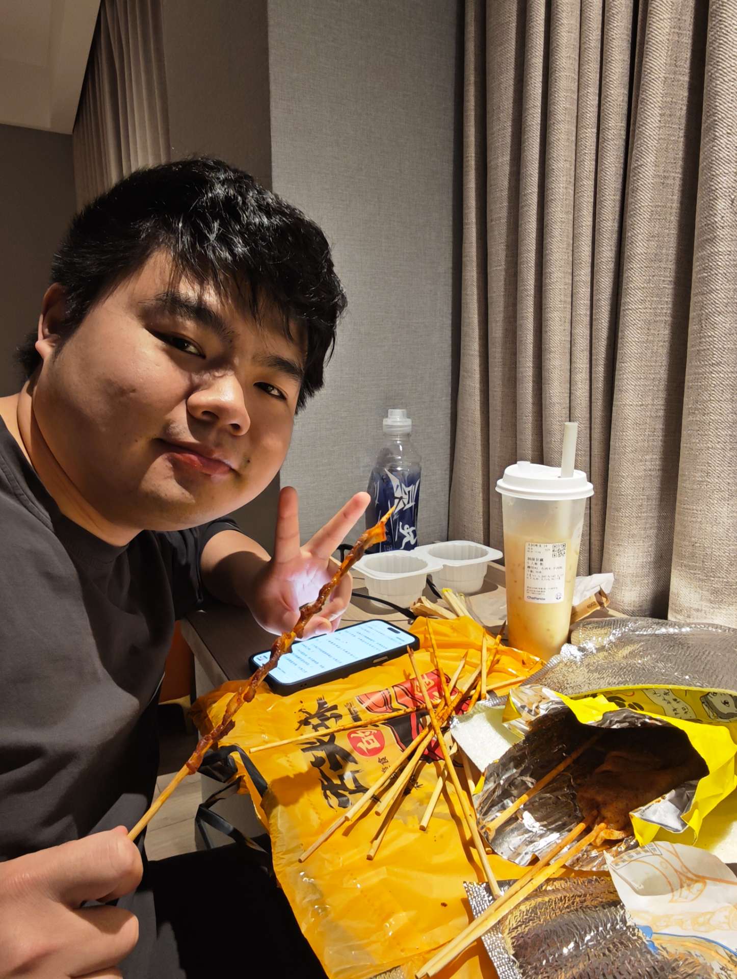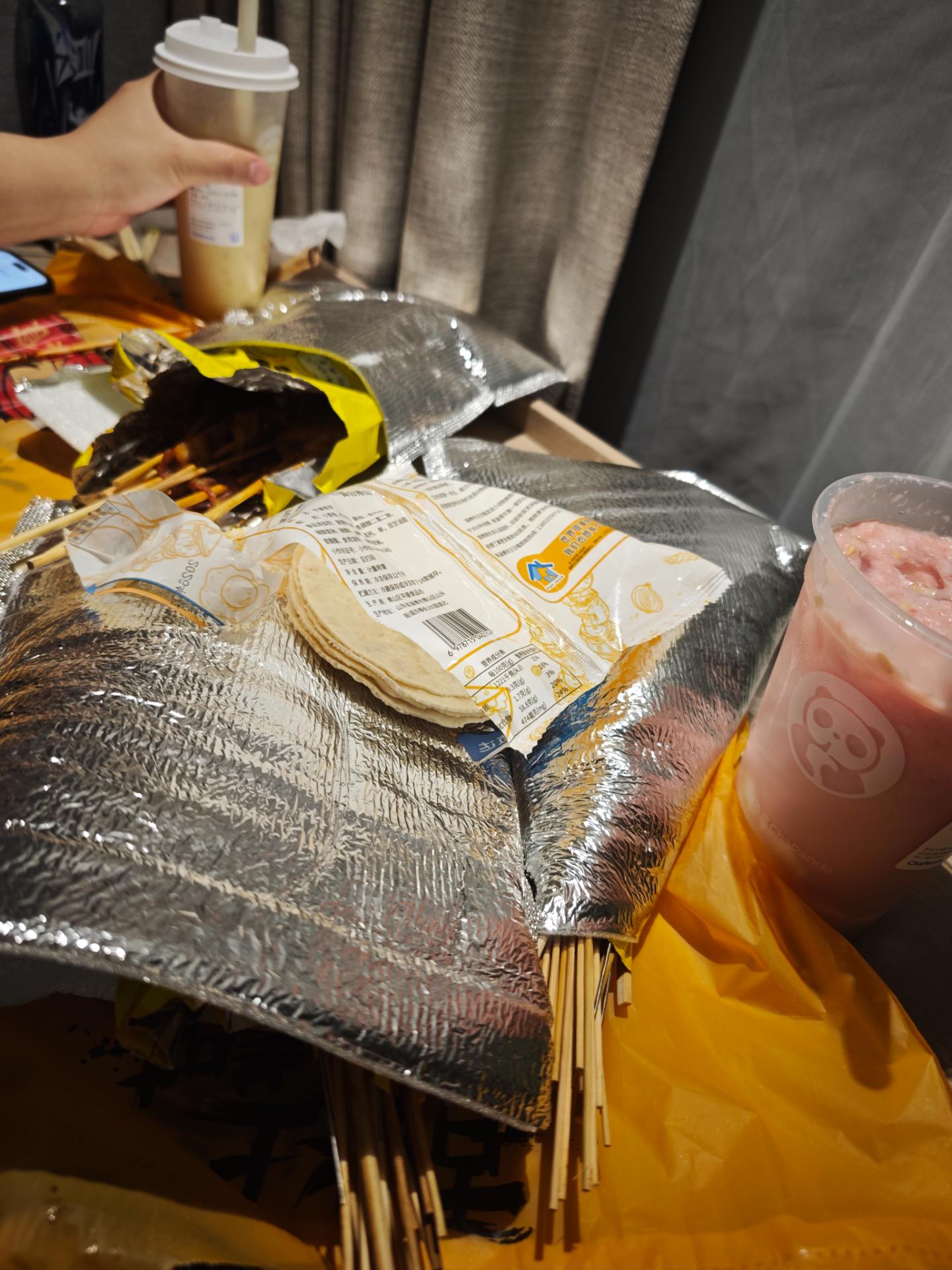 我们一边点烧烤,然后一边感叹这个老板到底从哪里赚钱哈哈哈哈 然后茶百道的新品,这个超级大瓜非常的清爽,是茉莉和西瓜的完美结合,大家的经典杨枝甘露也是非常的棒。